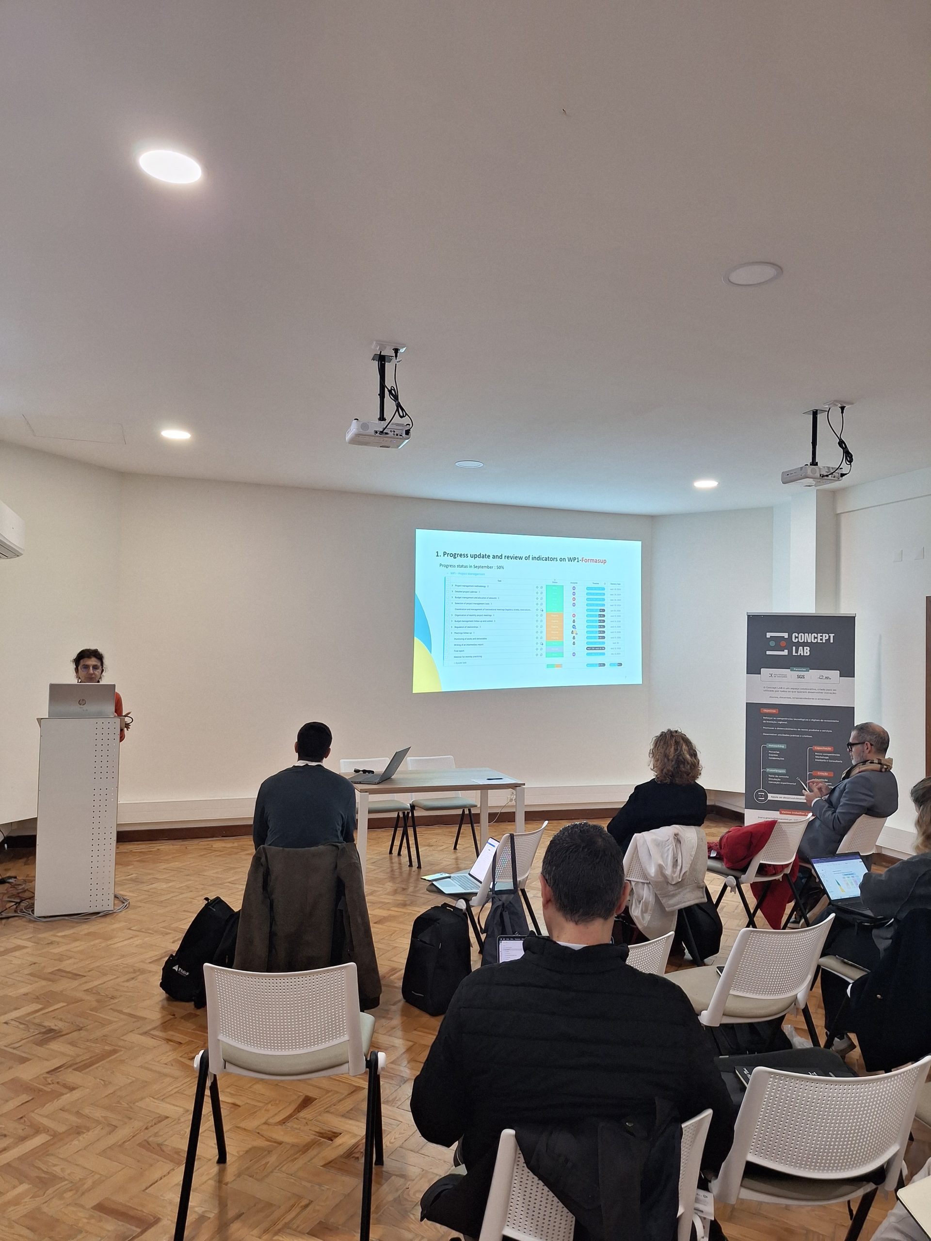 The leaders of this project, shared among Santarém Polytechnic University in Portugal, IMH from the Basque Country – Spain, and Formasup/Université from Côte D’Azur in France, are gathering to give feedback on each work package, and to analyze the work developed in companies by the apprentices who attended the MasterClass last June in Nice, France.